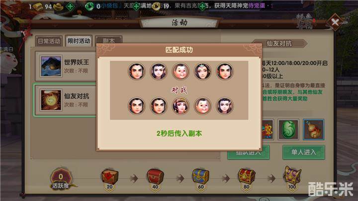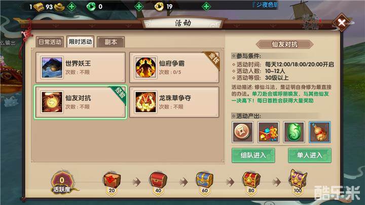 对于喜欢PVP玩法的仙友来说,每天12:00/18:00/20:00限时开启的“仙友对抗”活动绝对是一个不能错过的玩法。活动不仅会有不菲的经验奖励,还会有舞王秘籍、宝石礼包、铜钱、福佑仙丹和凝气石等道具奖励。