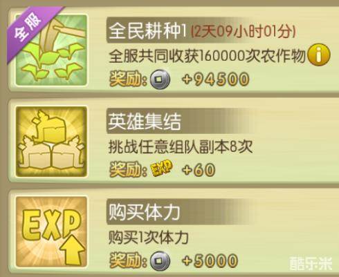 其他额外影响:全民耕种任务计算的是全服所有玩家种植次数,需要大家合力完成,若当前服务器人数少或者种植次数不够,会导致无法完成任务获得银币