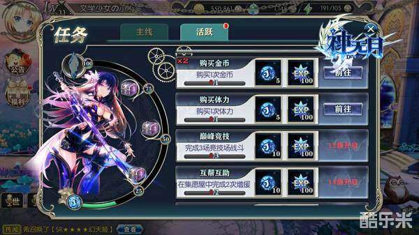 做“每日”,这是手游玩家们都懂的。在《神无月》里,每日任务被称为“活跃”,它是经验获取的重要来源。除了部分需要达到指定等级才能解锁的任务,大多数每日任务都是可以简单轻松完成的。比如购买体力购买金币,这都是每天上线后可以立即去完成的。每个每日任务完成后都可以得到100点队伍经验,在前期这个经验值还是非常可观的。