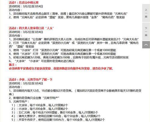 元宵节期间,在《暴走英雄坛》中完成危虎山副本或击败四大恶人,将获得潜能奖励及元宵大礼包;打开元宵礼包有机会获得大元宵或小元宵,打开后会获得大量潜能或随机属性的元宵武器。拼人品的时刻到了!到底是欧皇还是非酋,拿到的是破防武器还是B级装备,这就要看各位玩家们的运气了~你开到了什么属性的装备呢?