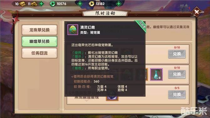 清灵幻鹿的神通技能也和其他上品宠物一样,可以从技能池一二三中随机抽取5个技能供自己使用,而该骑宠属于通用型骑宠,所以在神通技能方面选择自己合适的就比较妥当。