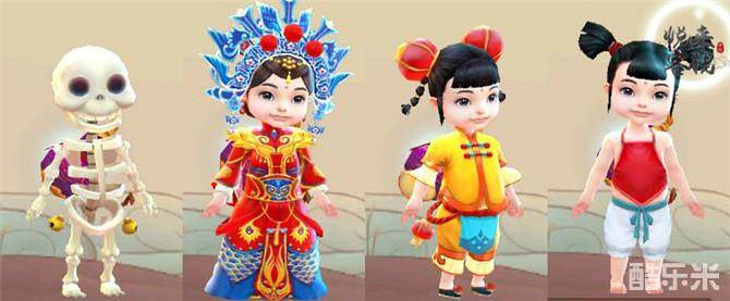 童女的外形实际上是要比童男要好看一些的,原因就是童女除了脸上的婴儿肥以外其他的造型方面都还好,可以接受,童男则基本上都是鼻涕小孩,留着鼻涕的小男孩估计和好看应该是搭不上边的。所以在童女方面龙章凤彩算是不错的了,因为它并不会显得童女头大,时装桃之夭夭则是用比较大的裙子来将身体部分放大,而用两鬓的头发遮住侧脸,减小脸部的大小。樱桃奶黄包也是完全根据儿童设计的,所以在外观上也算是非常匹配。最新更新的骷髅军团的变形时装也非常好看,非常适合仙友们选择。