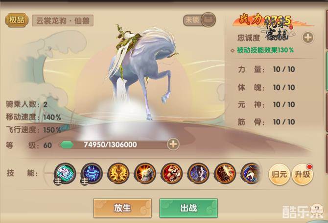而在二次进化成为仙兽之后,我们需要自己归元,才能将技能变为极品品质,不然身上的技能依旧是上品的品质。虽然我们是进化而来的极品骑宠,但是技能池4中的“无懈可击”“滴水不漏”这两个技能是无法学习的。