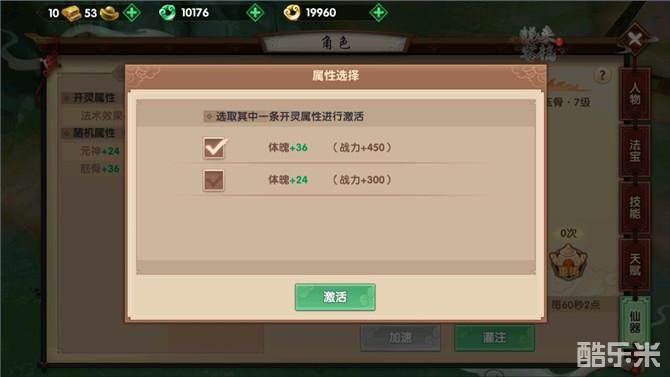 首先仙器成长分为初始、出尘、玉骨、洛书、寂灭、冲虚、戮因七个阶段,每个阶段有10级,每次提升等级(也就是开灵),必然会提升仙器开灵属性(开灵属性为仙友职业主属性),也有概率获得多条随机属性,不过一次只能从其中选择一条属性激活就是了。在随机属性方面,每次开灵都有机会提升获得随机属性的条数上限,而根据随机属性条数上限,也对仙器进行凡品、中品、上品、极品四个档次的标记,不过想要达到极品光是开灵可是不行的,还需要对仙器进行重铸。再不满意自己已经激活的随机属性的情况下,可以对仙器进行重铸,从而重新随机,每次重铸都必然会增加获得随机属性的机会,重铸次数越多,增加的机会也会越多,当重铸次数达到9次的时候,就必定会出现极品了。