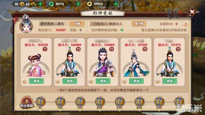 由于形神竞技分组方式基本是按照战力来分,所以同组内的仙友战力基本上都与你差别不大,在这样的情况下押10分就会比较危险。在形神竞技中每天可以增加五次挑战机会,一周最多可以挑战35次,那么以每次都胜利来计算,一共能获得350点基础积分,单单是这样我们就可以获得到除400阶段以外的所有奖励了,而在我们连胜之后,可以获得1-2点的连胜积分,也就是说只要保持不败,持续不押分挑战也可以拿到最终的奖励,不过为了保险起见,在对手实力低于你,或者是职业上有一些手法克制的情况下,也可以押2分来稍稍提高一下。