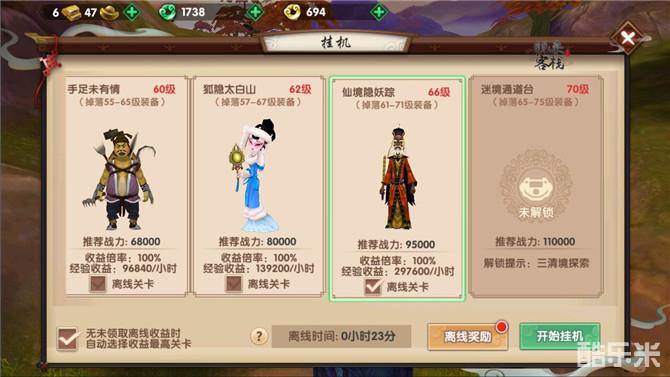 而离线挂机则会赠与我们巨大的经验值奖励,但是前提是一定要在挂机系统中解锁更高等级的挂机关卡才行呢,若是没能解锁高等级的挂机关卡,离线经验也会减少很多的呢。