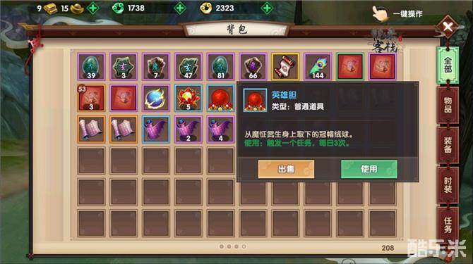 魔怔武生也是每日限时刷新在九曲湾的怪物,我们击败魔怔武生后可以获得道具英雄胆,使用该道具可以获得宁阳观内的任务,与NPC对话后即可完成,奖励可是有两颗龙珠草外加一个灵石的哦。而且该任务每天可以完成三次,也就是说,我们一天可以从该玩法中获得6个龙珠草呢。
