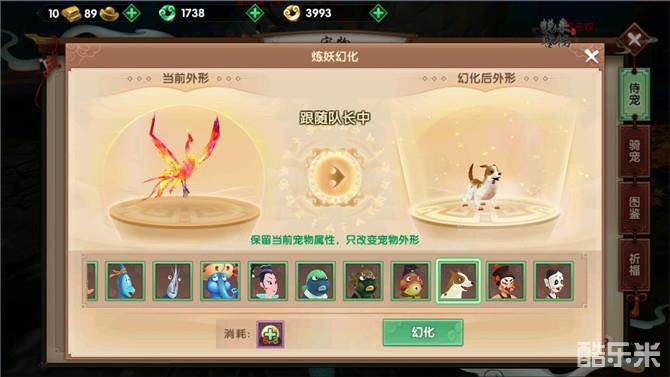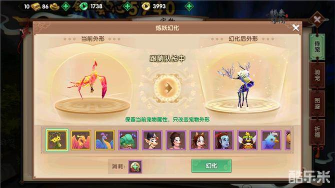 今天我们要看的系统就叫做【幻化】,幻化系统是一个可以改变侍宠外貌的神奇系统,在这个系统中, 我们可以根据自身的需求来改变侍宠的外形,可以将侍宠变化为任意我们已经拥有图鉴的侍宠外形,而且在外形幻化之后,我们还能够保留原先宠物的属性,让我们可以带着一只可爱的侍宠一起征战四方。