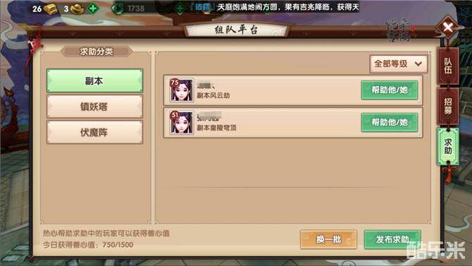 在副本中有时我们会发现,有些比我们等级低的仙友,我们也看不到他们的求助按钮,反而他们却可以点我们的求助。这其实是因为我们的副本奖励次数没有用完的缘故,只要副本奖励次数用完之后,在副本中我们就可以看到更多仙友的求助按钮了。