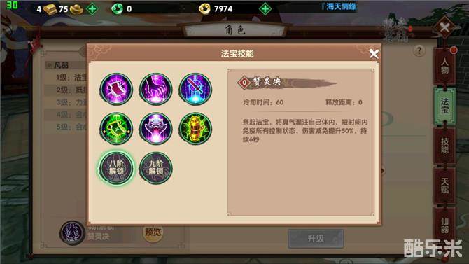 在法宝技能方面,小仙推荐八阶法宝技能赞灵诀,该技能可以短时间内免疫控制效果并且提升50%的伤害减免,是非常棒的防御技能。而另一个技能则推荐七阶法宝技能消魔诀,该技能可以使对方伤害值降低,并且短暂时间内压制对手,让其无法进行任何操作,是现阶段《寻仙》手游中最为强大的控制技能。