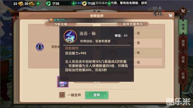 不过哪吒的获取难度还是稍微要高一些的,所以我们可能很多时候是需要在冰晶凤和小竹羚身上做出取舍的。他们俩实际上的效果是相近的,不过在这里小仙更加推荐小竹羚。其一是因为小竹羚的变异天赋连击技能造成连击的时候,伤害数值是主人体魄数值的5倍,这个属性完全是对金刚力士非常有利的。而且在秘法技能方面,金刚力士选择物理伤害这个效果也要比忽略物防来得更好。