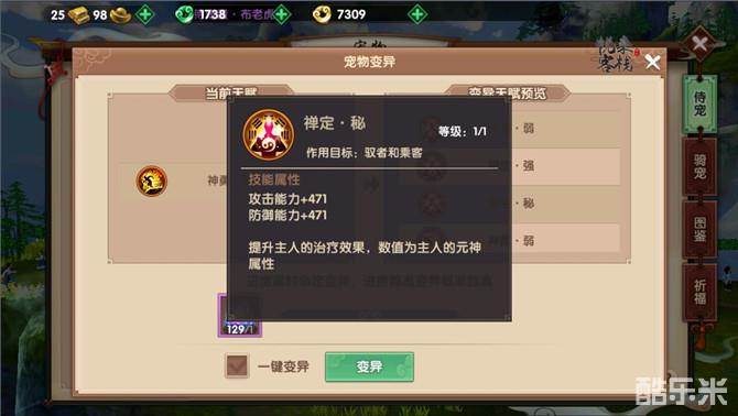 【神勇】:在主人攻击到对方的时候为主人提升法效以及攻击力,最高提升10%。该技能可以直接提升10%的法效,不但可以让天君符咒师的攻击力有所上升,对治疗量也是有一些提升的。