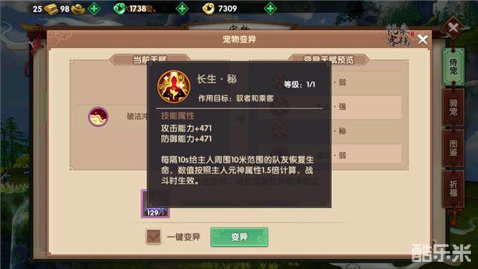 但还有一个侍宠,它拥有的技能虽然不会直接提升治疗效果,但在战斗中所能够提供的治疗效果也非同凡响,这个侍宠就是蓝髓凤。它所拥有的变异天赋【长生】可以说是非常独特的侍宠治疗技能了。