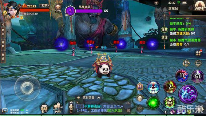 进入副本封魔台副本之后,会直接在一个巨大的台子上,我们的正面有一个巨大的金刚,地图中的场地除了这个台子以外,没有其他的路,也就是说所有的战斗都是在这个台子上进行的。在副本中一共有两个任务,一个叫做【驱魔斩先锋】,需要击败BOSS龙魂天枪,另一个则是【破魔气驱逐魔尊】,需要击败最后的BOSS魔尊,完成任务后可以获得经验金钱等奖励,还有机会获得灵石奖励。