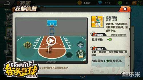 后撤突破:突破时快速向后移动拉开防守空间,迷惑防守者,控球等级+30,突破时按篮筐反方向键+突破建生效。