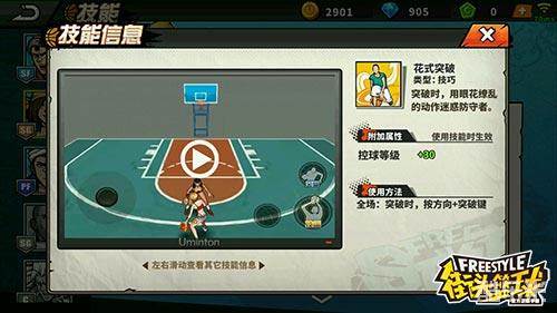 花式突破:突破时用眼花缭乱的动作迷惑防守者,控球等级+30,突破时按方向键+突破键生效。