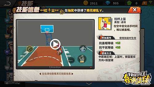 栏杆上篮:在空中变化出手时间难以被盖帽,抗盖帽等级+15,抗干扰等级+16,中距离区域上篮时按篮筐反方向键+投篮键生效。
