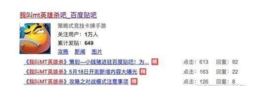 百度贴吧也有《我叫MT英雄杀》账号啦!该官 方贴吧主要更新游戏开测和上线信息,不定期发放玩家福利以及游戏攻略,玩家在游戏中遇到的问题均可在这里提问,会有官 方客服第一时间为大家解答。