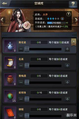 提升忠诚度的好处非诚明显,按照百分比提升部队的作战能力和资源产出能力等属性,这样的加成将会随着我们战力的提升而变得越发明显。每日参与击杀土匪获得名品,并将不同类似的名品赠予最合适的武将才是提升忠诚度的最佳方式。