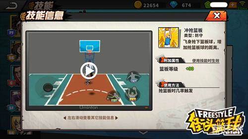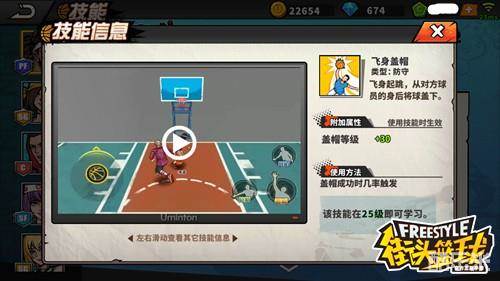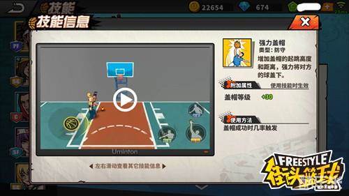 强力盖帽、飞身盖帽、欧洲步扣篮、冲抢篮板