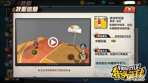 欧洲步扣篮是目前已知触发范围最大的中距离扣篮技能,虽然触发几率较低,动作比较慢,但也是目前比较适合马库斯的一个扣篮技能。当然,如果你不喜欢这个技能的话,替换成战斧扣篮也是可以的。