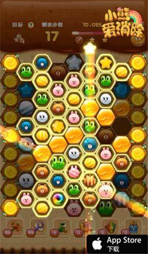 《小熊爱消除》是由龙图发行的全球首款六边形消除手游。获得LINE正版授权,以LINE经典卡通角色为元素,精心设计45个主题章节、超过500个充满奇趣的关卡。分数关、钥匙关、巧克力关……独特的消除方式与华丽的消除特效,带来妙趣横生的挑战和轻松愉悦的成就感。更可与好友互动、挖掘无限惊喜福利,尽情享受休闲乐趣!