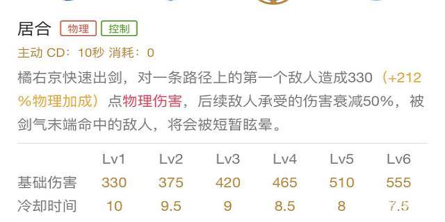 数据分析:处于技能边缘的敌人多承受额外伤害,注定了橘右京是一个需要控制攻击距离的英雄。