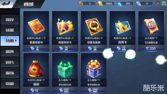 点击左侧《道具》选项,会进入道具商品页面,该页面展示的商品都是一些平时技能升级或者训练的卡片,点击该商品可以查看卡片具体信息。