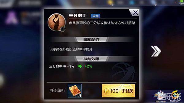 控球任务的减轻带来的是得分任务的加重,3人队伍中一般由中锋、前锋和后卫组成,队伍中的后卫不仅要承担起外线分球组织进攻的任务,更关键的是要有稳定的三分入账,通过疾风骤雨般的三分球攻势让防守方难以招架,进一步拉大比分差距,所以在球星的技能天赋选择上一定要优先强化库里的三分射手这项技能。