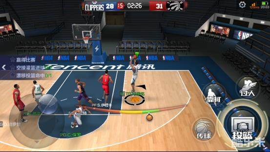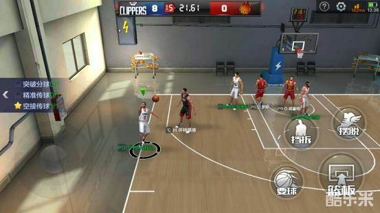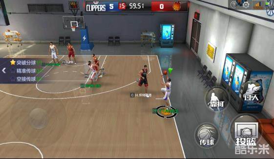 对于突破分球,我们可以先点击过人把防守人甩开,然后触发上篮,看到保罗起步了,点击传球键,就完成啦