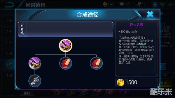 打野路线核心装:巨人之握