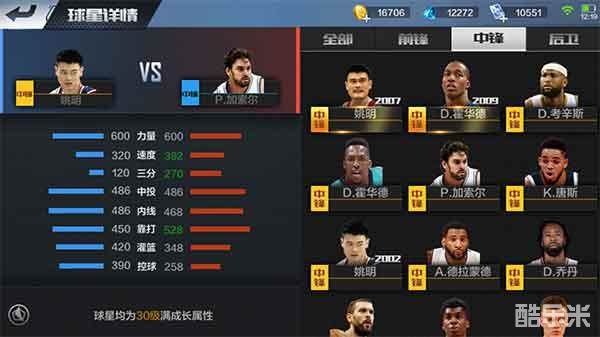 《最强NBA》中锋球员选择推荐 加索尔和姚明对比