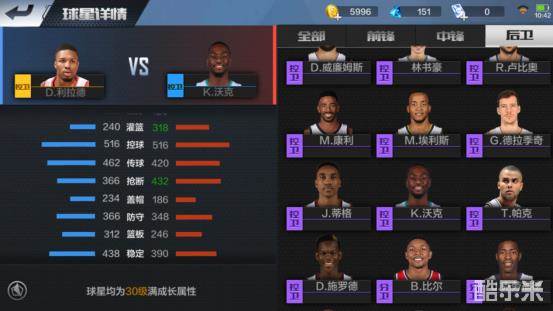 从以上对比结果我们可以看到,利拉德的力量、三分、中投、内线、靠打、传球、盖帽、防守、篮板、稳定能力都比沃克强,而沃克的抢断、控球、灌篮、速度能力比利拉德高一些。