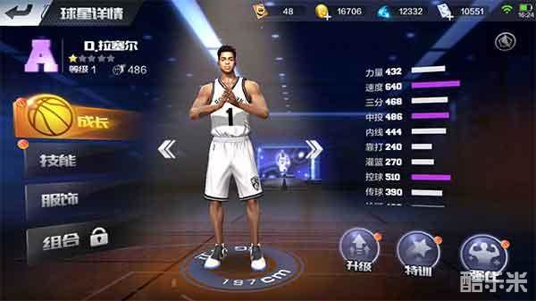 根据属性可以看出,拉塞尔力量属性偏低而移动速度较高,不适合进行身体对抗,最好可以通过不断的跑动来寻找机会帮助队伍进攻。468的三分、444的内线和486的中投属性证明了拉塞尔有着很强的得分能力,在内线和外线都可以帮助队伍完成进球。510的控球也让拉塞尔在持球单打时不容易被对手进行抢断。而在防守上,拉塞尔有着420的抢断和378的防守属性,虽然属性并不算出色,但可以给进攻球员造成不小的干扰。