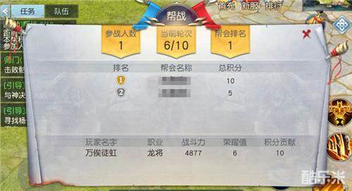 每一场帮战可以替帮会增加积分,积分可以提高帮会在榜上排名。