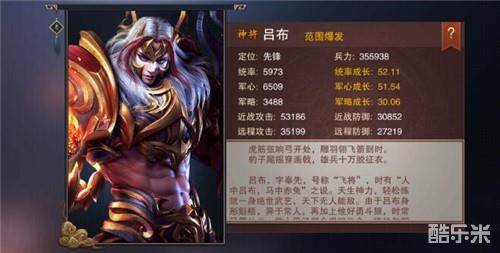 说起三国第一勇将,公认的便是吕布吕奉先,民间素有“人中吕布,马中赤兔”的美谈。在游戏中,吕布和赵云一样,同样作为游戏中发展潜力最大的武将,相对于赵云的暴力输出,吕布的定位则更加全面,可以说是攻防一体。核心技能天下无双能够对周围所有敌方打击3次。造成56%的近战伤害,并且还能提高200%的攻速与移速。在打出瞬间的高额爆发之后,吕布还能继续持续输出,对敌方来说,便是噩梦一般的恐怖武将。