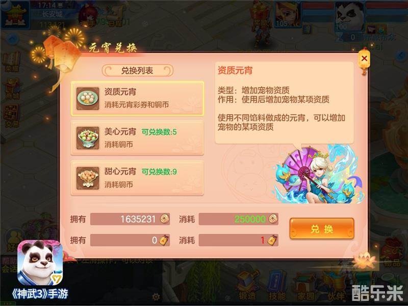 欢乐猜灯谜,寻求真相破解迷题,智力比拼如期而至。活动期间,少侠们参与灯谜大会等元宵活动时,就有机会获得专属道具“元宵彩券”,使用元宵彩券以及少量铜币即可在花灯仙子处兑换资质元宵。资质元宵可以给宠物增加资质,一共有五种类型,分别对应攻击、防御、体力、法力、速度资质。想要打造更极品宠物吗?快叫上小伙伴一起来《神武3》手游参与活动兑换元宵吧!