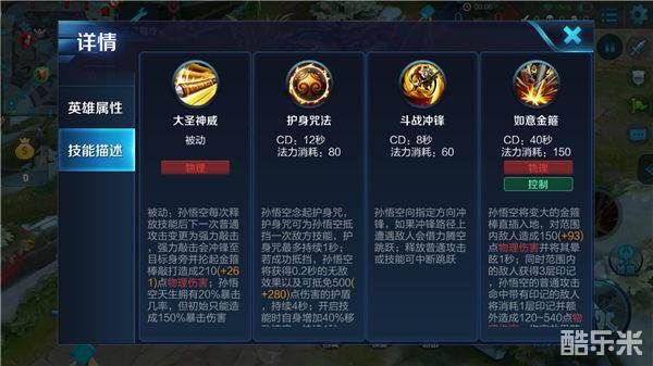 2、孙悟空只有二技能一个位移技能,因此机动性也不是很强,所以在选择攻击目标的时候尽量不要选择高机动性的英雄,否则很容易被对方逃掉,这样会使自己在战场上的作用大大削弱。