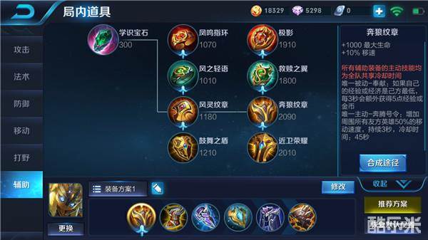 出装思路:鬼谷子的这套出装前期以辅助队友GANK为主,后期团战可以顺利完成团控并吸引火力。前期鬼谷子技能可以大幅提升GANK效率,在线上取得优势之后可以帮助队友进行有效的GANK。第一件选奔狼纹章提升鬼谷子的生命值和移速,而且主动使用可以让鬼谷子和周围队友获得大幅移速提升,追击和逃命都非常不错。第二件做出疾步之靴,高移速可以让鬼谷子从容的穿梭在峡谷之中,及时的支援队友并且还能快速回线。而第三件做出冰痕之握,冰痕之握不仅是一件非常棒的防御性装备,而且被动的减速可以让鬼谷子在辅助GANK的时候更有效率。随后做出极寒风暴让鬼谷子在防御能力上得到更大的提升,配合极寒风暴的被动效果可以适应中其团战。最后做出魔女斗篷、不祥征兆提高鬼谷子的生存能力。