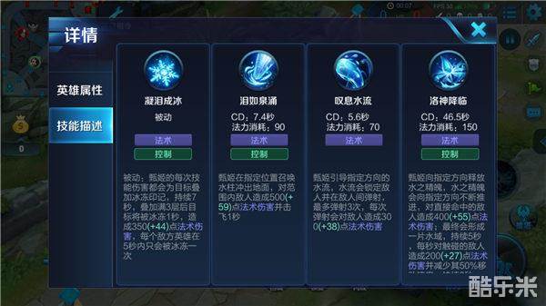 甄姬在指定位置召唤出水柱,对范围敌人造成伤害并击飞。一技能的命中率在熟练之后还是非常高的,团战中的效果很明显,配合上被动的冰冻,甄姬能把敌人控制到死。