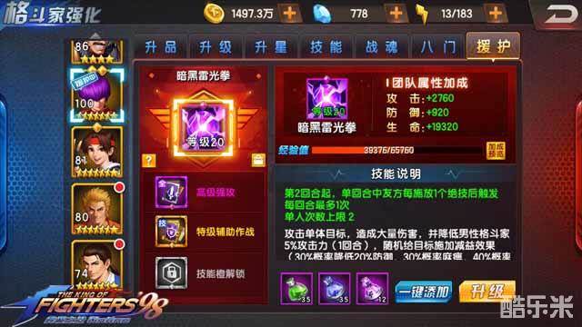 《拳皇98终极之战OL》援护技能等级快速提升攻略