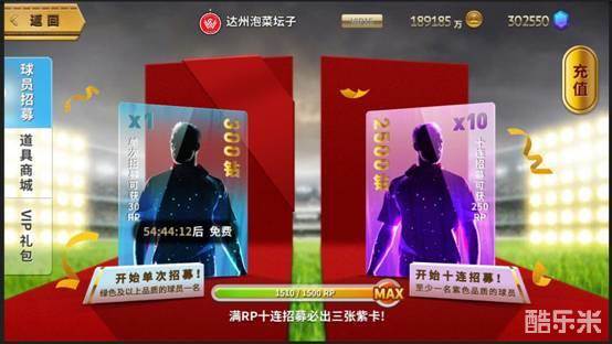 在商城里,可以使用钻石通过购买单抽和十连抽获得球员;