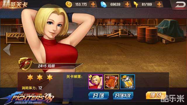 第一波的玛丽在后排并不是特别能抗,玛丽的伤害一般,仍然是以普攻攒怒为主。第二波虽然有特瑞2003,不过第一回合只要有免伤技能,也不是很怕特瑞2003的大招,第三波的时候满怒的格斗家较多,用绝技就可以收掉敌人。