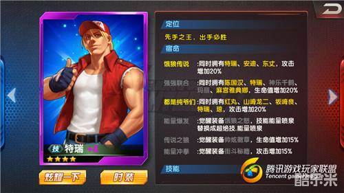 饿狼传说:同时拥有特瑞、安迪、东丈,攻击增加20%。