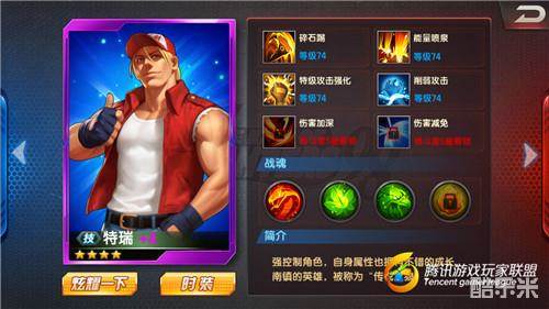 拳皇98终极之战OL中的格斗家对于拳皇粉来说都是耳熟能详的,饿狼队的特瑞就是一个帅气与实力并存的格斗家,在拳皇98终极之战OL中特瑞是一个13资质的优秀格斗家,其出色的控制与减攻让队伍生存能力大大提升,所以特瑞就是人们口口相传的先手之王、出手必胜!