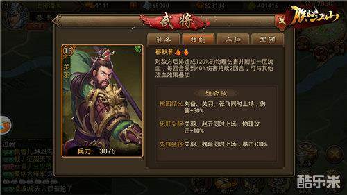 最后说说橙将中值得培养的暴击型组合,具有代表性的应当是关羽+魏延的橙将组合,他们一同上场可以增加30%暴击。自带技能分别对敌人的后排和前排造成伤害,并附带流血的效果。这个组合如果运气好,普通暴击加上流血效果,能够很快的压低敌人血量。如果你看着一座预备役很多的城池而惊叹,那么带上你的暴击武将吧,会有意想不到的效果哦!