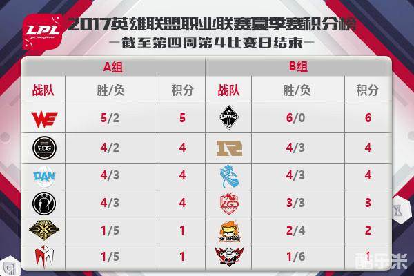 图1:截至7月2日LPL夏季赛战队积分排名