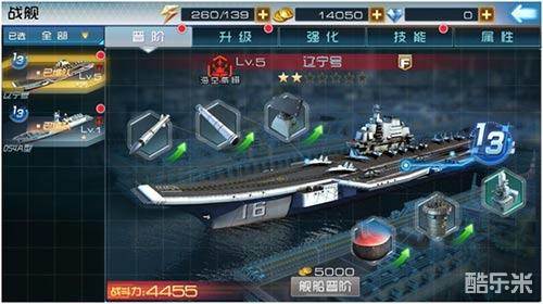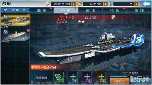 通过升级功能,消耗“战斗日志”中的道具,就可以对战舰等级提升,等级提升后,战舰的总体战斗力和各类基础属性都会得到提升,当然等级上限不能超过玩家自身的等级限制。