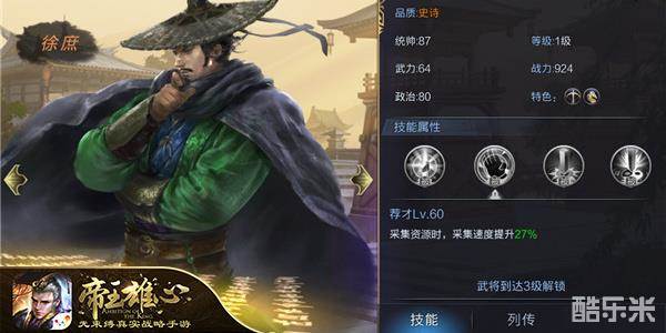 在《帝王雄心》的乱世中,自身发展是成就霸业的基础。建设主城、囤积资源、发展兵力,是征伐天下的重要条件。而发展自身实力,采集类技能的运用至关重要。武将采集类技能可以提高武将外出采集资源的速度,随着技能等级的提升,采集资源的速度也可大幅提升。