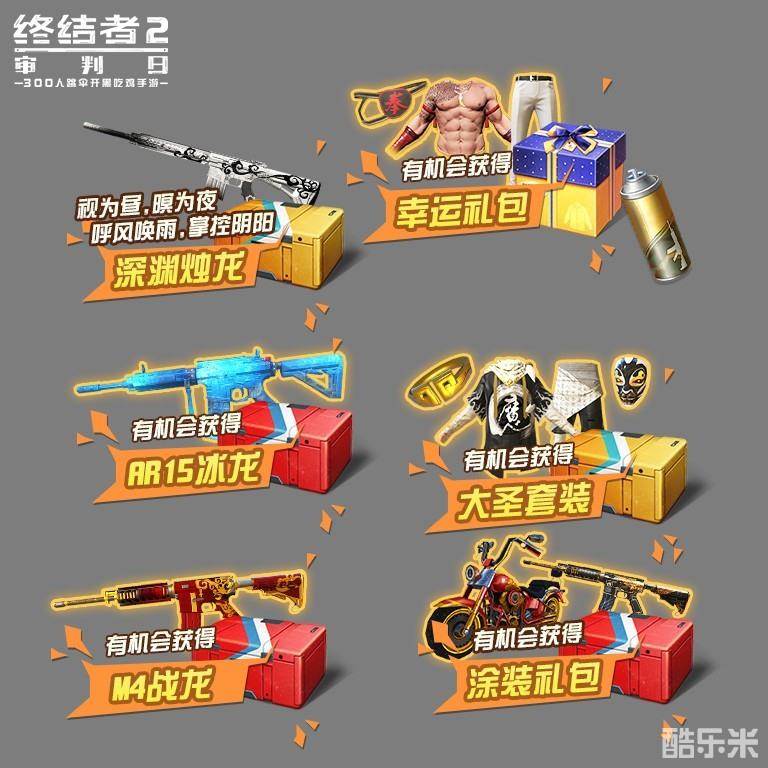 无论你是钟意M110烛龙外观的酷炫神秘,还是钟爱M4战龙外观与AR15冰龙外观的冰火交汇之美;无论你是希望在幸运礼包中开出北仓拳皇和白执事部分部件独领风骚,还是想要获得大圣归来主题的套装与涂装玩转大闹天宫,准点礼盒都可能为你实现!